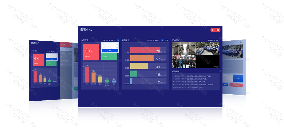 安防智能管控平臺實現(xiàn)對監(jiān)獄內(nèi)部報警設(shè)備的整合,包含 雷達報警,高壓電網(wǎng)報警,電子圍欄報警,固定按鈕報警,非法入侵報警,工具帶離報警,人員越界報警等一系列的報警,并可同步報警周邊攝像頭開啟視頻掌握現(xiàn)場情況。