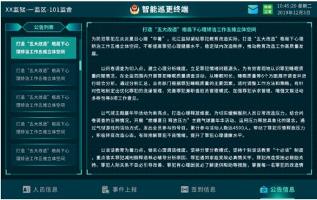 近年來,隨著科技的不斷發(fā)展和應用,在監(jiān)獄、看守所等場所進行智慧化管理成為一種趨勢。通過運用大數(shù)據(jù)、云計算、人工智能等技術手段,實現(xiàn)對罪犯更加精準、高效、智能的管控。 在監(jiān)所智慧新監(jiān)管中,最突出的特點是利用現(xiàn)代科技手段提高監(jiān)管效率和質(zhì)量。例如,采用人臉識別技術對罪犯進行身份識別和考
